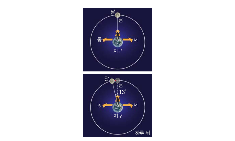 p91_지구가 한 번 자전하는 동안 달의 위치 변화.jpg